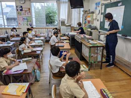 6年生家庭科。暑い日の過ごし方についてふり返りました。地球環境にも目を向けた生活の仕方を考えました。