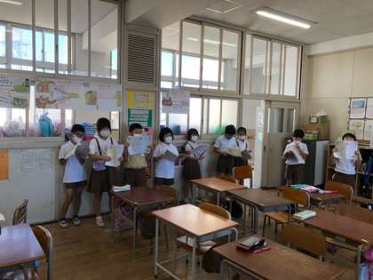 国語の「ニャーゴ」を、ねこ、ねずみ、ナレーターに分かれてなりきって音読しました。ねこの気もちを授業でしっかり考えたので、気もちをこめて上手に音読することができました。