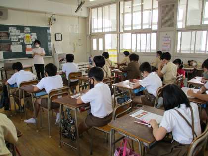 大阪市教育委員会の歯科衛生士さんと武下歯科校医さんに来ていただき、歯周病とはどんな病気か、またむし歯や歯周病は生活習慣病であることを教えていただきました。