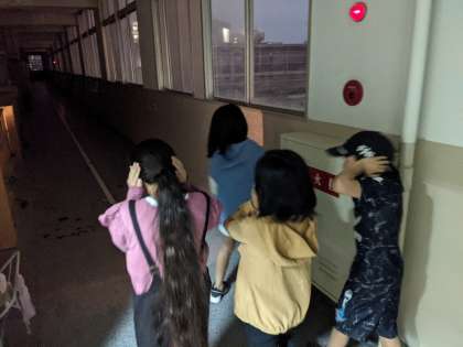 出発前には、PTA役員さんによる「怖い話」を聞きました。