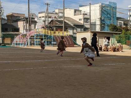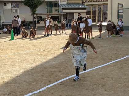 今日は集会委員会の遊び集会でした。今日は「忍者修行ゲーム」という新しいゲームに挑戦しました。A班、B班が合同で、リレーをします。バトンではなく、新聞紙をお腹にあてて、風を切って走ります。新聞紙を落とさないように修行をします。みんな、なかなかかっこいい忍者になりました。