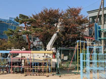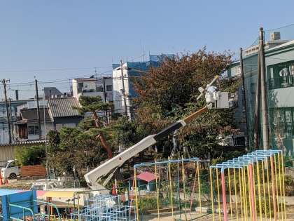 今日から3日間、四貫島の森と、校舎回りの桜の木の剪定をします。近隣の皆様にはご迷惑をおかけします。