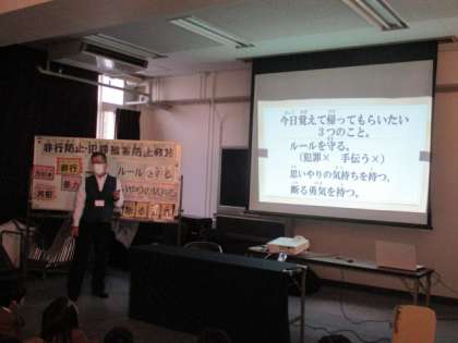 梅田少年サポートセンターの方に来ていただき、犯罪の加害者にも被害者にもならないための大切なことをたくさん教えていただきました。
