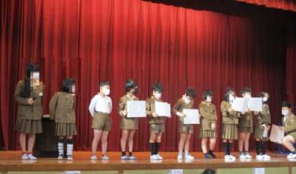 よく聞いていたはずなのに、なかなか難しい問題が続き、みんなで悩みました。全問正解したのは2班Bだけでした!すごい!もう一度あの本を読んでみたいという気持ちになった集会でした。