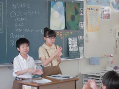 各委員会活動とたてわり班活動が始まりました。1年間、四貫島小学校のリーダーとして優しくかっこいい6年生でいてください。写真は上から各委員会の委員長の発表の様子、各委員会の委員長、たてわり班での班編成の様子です。