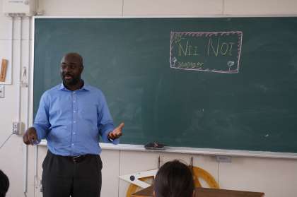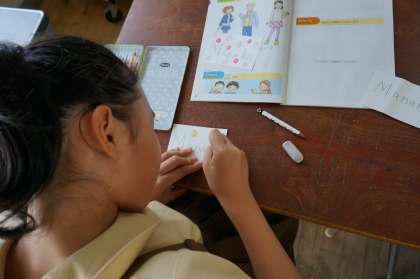 外国語の時間は、ニーノィ先生と楽しく学習をしています。