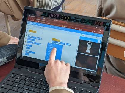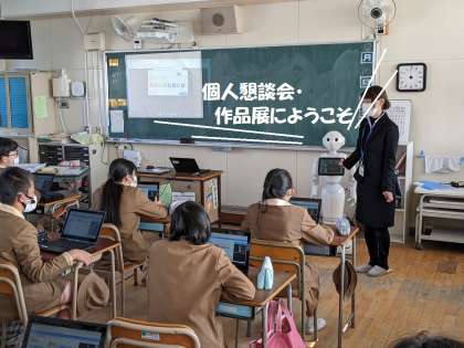 ICT支援員さんからプログラミングを教わりました。今日から個人懇談会、作品展なので、来校された方々をお迎えしたり案内したりする動きを入力しました。今日から3日間、6年生が入力した、玄関のペッパーにもご注目ください。