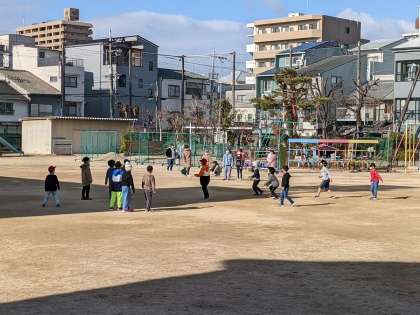 運動場では、いきいき活動に参加している皆さんが元気に遊んでいました。寒さに負けず体を動かしていました。
