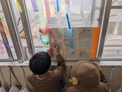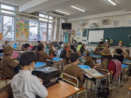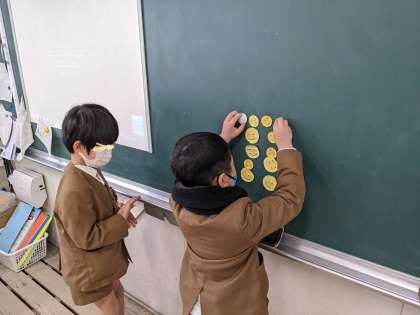 一日のおわりは、日直さんが司会の「終わりの会」で帰ります。友だちが頑張っていたことを発表したり、係活動の連絡をしたりしています。子どもたちの笑顔と発表で、あたたかい気持ちになることができます。子どもたち同士で、学校生活をどんどん楽しくしていきましょう!