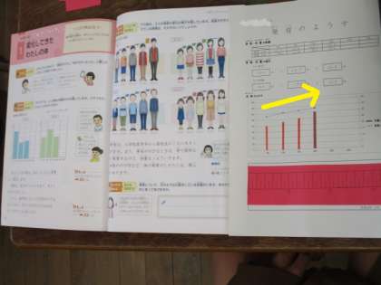 保健の学習で、自分の成長を身長の伸びで確かめました。一人ひとりのグラフは、養護教諭が作ってくださいました。