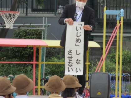 校長先生は、「困ったことがあったら、先生やおうちの人に伝えてほしい、みんなが楽しく学校生活が送れるようにしていきましょう」とお話を締めくくられました。