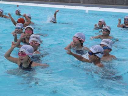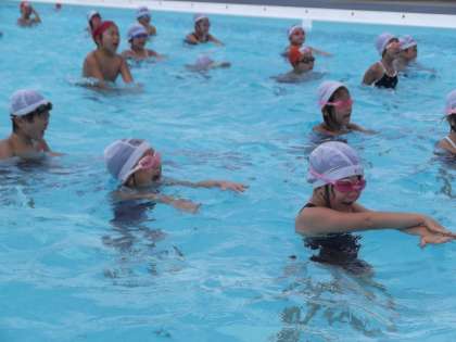 大きなプールを怖がっていた1年生も、今ではしっかり慣れて楽しそうに泳ぐようになりました。