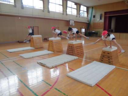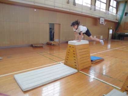 今日は体育でとびばこのテストをしました。6年生ともなれば6段でも簡単にとびます!8段まで軽々とぶこともできていました。「閉脚とび」や「台上前転」などいろんな技にチャレンジしました。