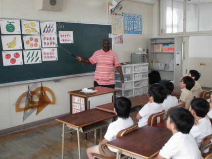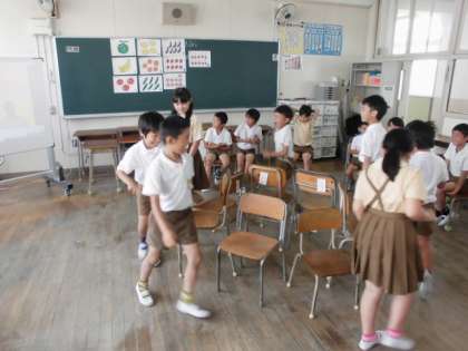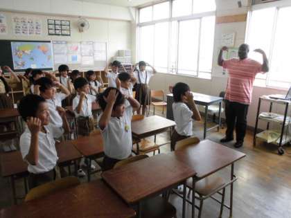 1時間目に、学期に1度のニーノィ先生による外国語活動がありました。