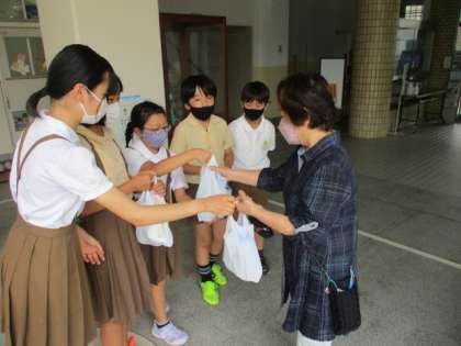 感謝の気持ちをお伝えしに、代表委員の児童がご挨拶に伺いました。2学期もお世話になります。どうぞよろしくお願いします。