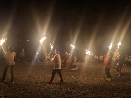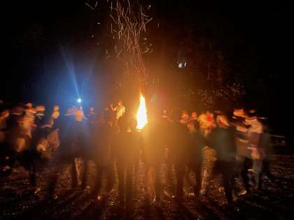 火を囲み1日の思い出を振り返り、友情を確かめあい、深めていきます。キャンプファイアーが始まりました。盛り上がっています。