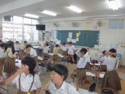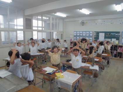 毎朝、健康委員会のお兄さんやお姉さんが、姿勢をよくする体操を教えに来てくれています。