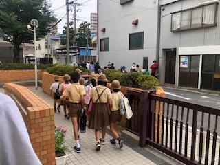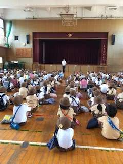 3時間目は台風が接近してきたという設定で避難訓練をしました。地域別で集まり、集団下校をしました。