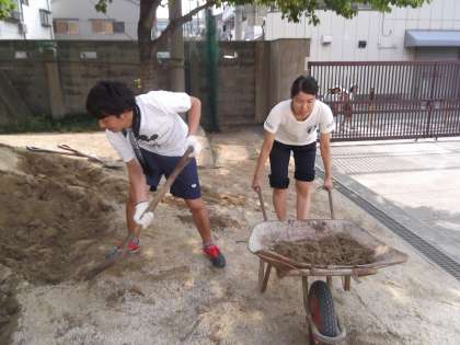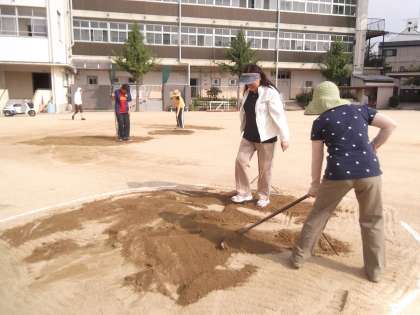 昨日の放課後、教職員全員で運動会に向けて、子ども達が、けがなく安全に練習できるようにグラウンドを整備しました。
