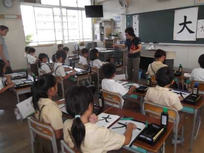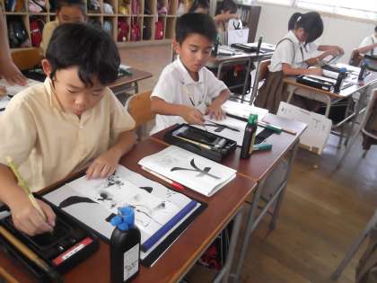 3年生から書写の授業が加わりました。ようやく用具の使い方や筆の扱い方にも慣れてきました。書写の研究をされているベテラン教諭(全市的に若手指導に活躍されています)が、3年を指導しました。