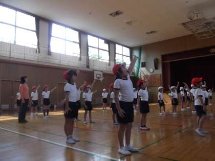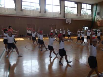 今週から運動会の練習が始まりました。1年生と練習を一緒にしています。さすが2年生!むずかしい振付けもすぐに覚えて、1年生にかっこいいところを見せています。これから、運動会に向けて、頑張って練習していきます。当日を楽しみにしてください。