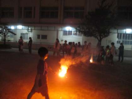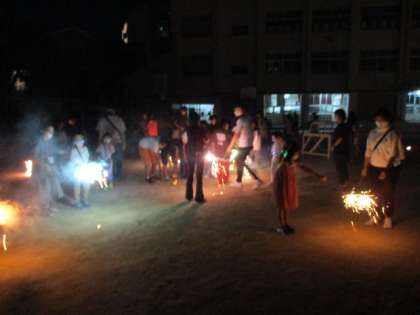 3部は花火の夕べです。運動場で手持ち花火をしました。低学年は保護者の方も一緒に楽しんでいただけたのではないかと思います。