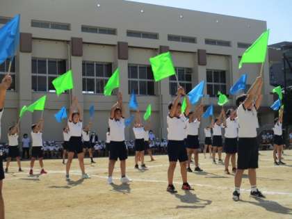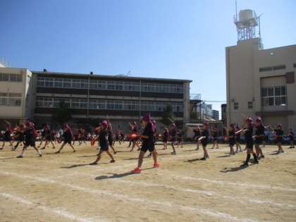 運動会は心配していた雨もどこへやら、快晴んぽ元で行うことができました。おあかげで、プログラム通り進めることができました。