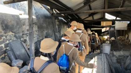 陶芸教室の後は記念撮影をしました。有名な登り窯の見学もしました。