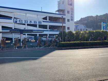 鳥羽水族館に着きました。予定通りの行程で到着できました。館内は活動班ごとに見学して回ります。