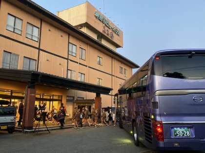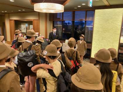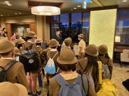 宿泊するホテルに到着しました。フロントで開舎式を行い、ホテルスタッフの方々にご挨拶をしました。