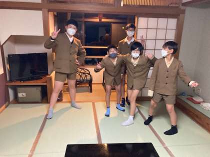 部屋に荷物を納めた後は、避難訓練をして、安全を確かめました。夕食の時間まで、部屋の中で休憩です。