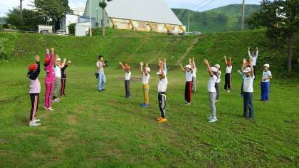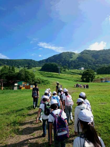 朝の体操をしてから山登りスタートです!天気は快晴☀山登りは大変ですが頂上まで頑張って!!
