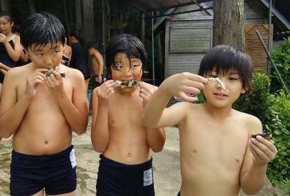 魚つかみで必死になった分,塩で焼いた魚は,おいしかった〜