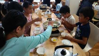 林間2日目の夕食の鴨鍋もおいしかった〜♪