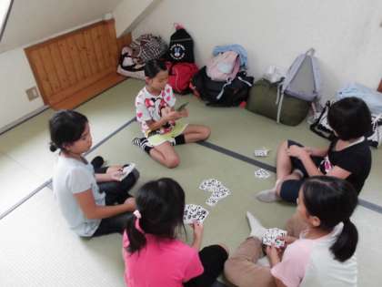 部屋では、トランプをしたり、活動の振り返りをしたりして過ごしました。