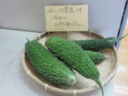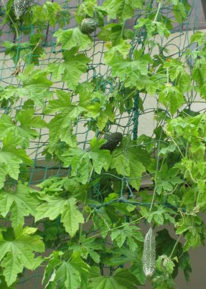 学校のゴーヤは,すくすく育ちいっぱい実をつけました。