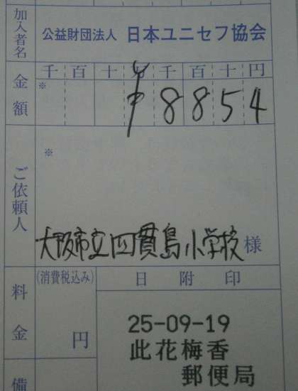 9月10日から12日に集めましたユニセフ募金を集計しました。