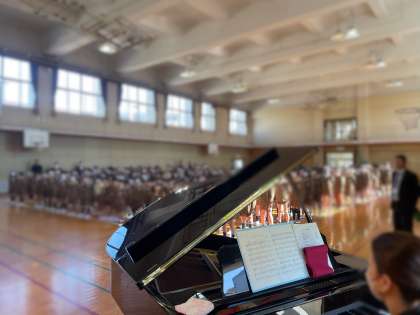 始業式では校歌を歌い、講堂に子どもたちの歌声がひびきわたりました。
