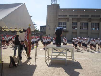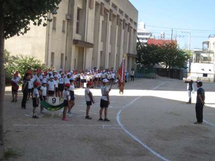残暑が続く中,子ども達は運動会の練習に頑張っています。今日はいよいよ全体練習で開会式・閉会式の練習をしました。初めての1年生も,しっかり話を聞き,動いていました。運動会当日を楽しみにしておいてください。