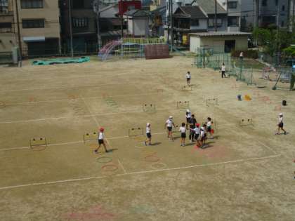 5年生は体育でハードル走をしています。自分の課題を見つけて練習していました。