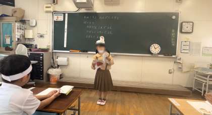 国語科「あめですよ」の音読会を行いました。はきはきと、大きな声で、正しい姿勢で元気よく読むことができました。聞き手の人も友だちの発表を静かに聞くことができ、態度で友だちを応援する姿が見られました。
