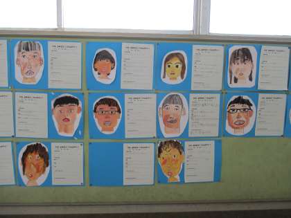 今年度最初の図画工作科で自画像を描きました。鏡をよく見て、各パーツをかき、自分の顔の色にぴったりな色を4色の絵の具を混色して作りました。みんな特徴をとらえて、個性あふれるものに仕上がりました。