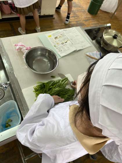 基本的な調理方法だけでも、注意する点がたくさんあり、苦戦している児童がたくさんいましたが、全部の班がとても上手に作ることができました!