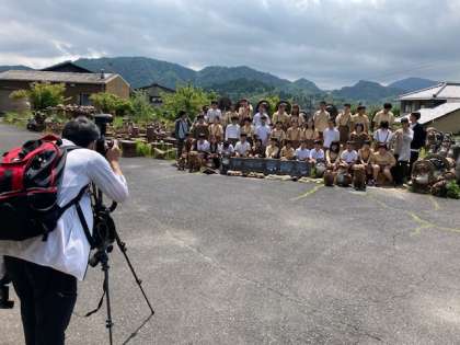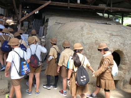 陶芸教室の前に、登り窯の見学と記念撮影をしました。