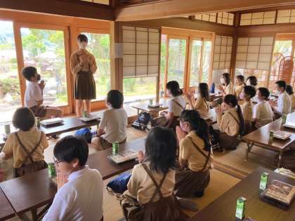 宗陶苑内の茶室で、庭園を眺めながら昼食をいただきました。