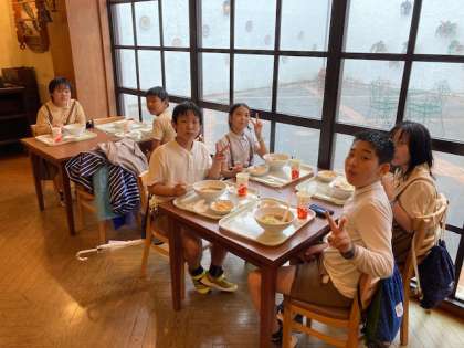 早めのお昼ごはんです。予定より30分集合時刻を早めています。