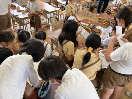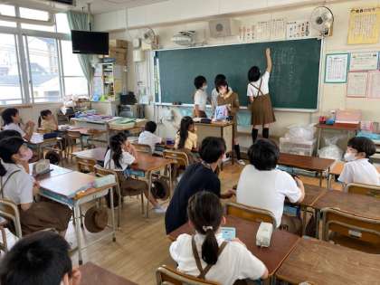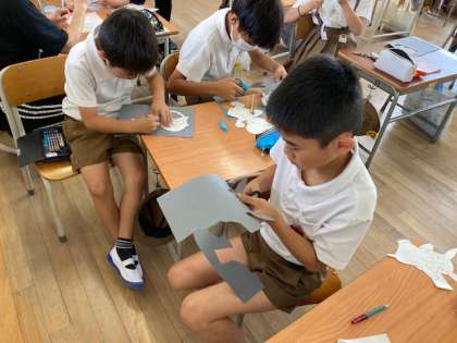 2時間目にたてわり班ごとに集まり、来週実施される四貫島まつりに向けた準備をしました。班で出すゲームコーナーについて話し合い、飾り付けなどを用意しました。