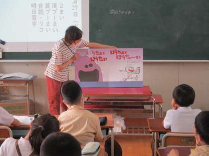 朝のチャレンジタイムに、読み聞かせボランティアのクローバーさんが、絵本の読み聞かせをしていだたきました。今日は中学年(3・4年生)の日でした。みんな楽しそうに聞いていました。クローバさんのメンバー募集中です。