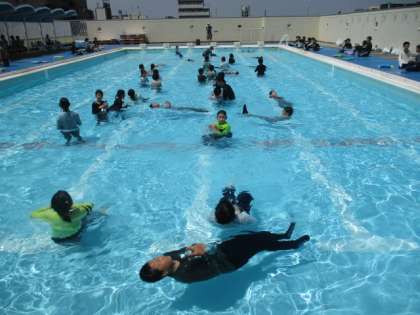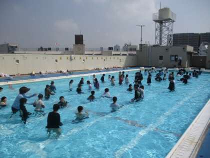 全学年で着衣泳を実施しました。水の事故に備え、水遊びの楽しさだけでなく、水の怖さを学びました。服を着たままで泳ぐことは大変だということがわかりました。
