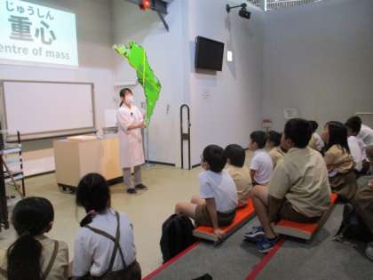 サイエンスショーでは、「重心」についてマジックショーのような演出で、みんなワイワイと参加しながら学習しました。